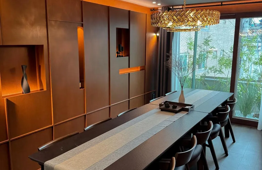 The 102 m² 7 Minutes From Seoul Station Remare Apartment is located in the Yongsan-Gu district of Seoul, nearly a 5-minute walk from Huam Market. This spacious apartment offers a terrace with views of the garden.